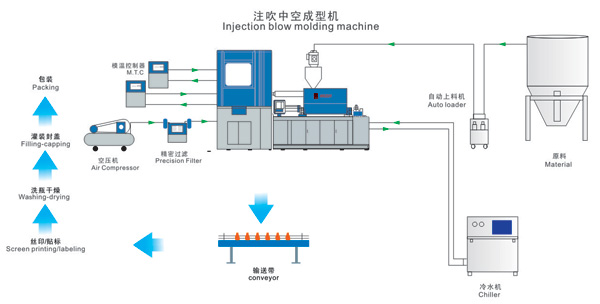 注射吹塑成型技術特點: